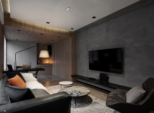 设计师在黑白灰间,用材质连接空间,运用空间中光影交叠的层次,还原材质的肌理和质感。再将材质比例进行把控,新的分割方式平衡空间的比例。视觉的拉伸和穿透上,用了灰镜,把空间化繁为简,单调不失趣味,创造出一框一景的生活场域。